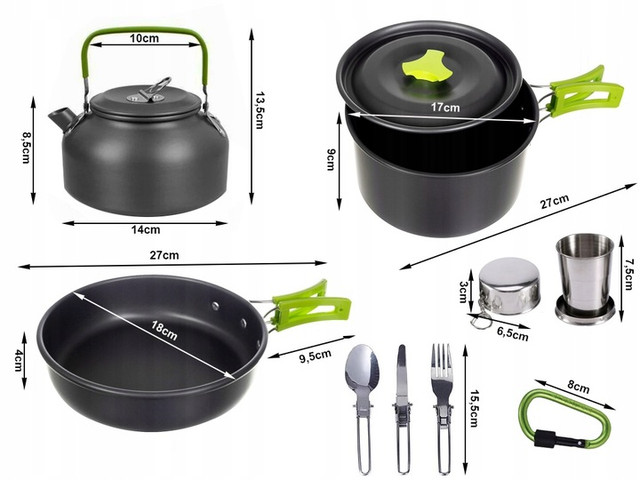 Туристичний набір посуду Trizand 23667 18 в 1 — це універсальна міні-кухня для двох осіб, яка ідеально підходить для кемпінгу, подорожей, наметових стоянок чи дачі. У наборі є все необхідне: каструлі, сковорідка, чайник, столові прибори, чашки, карабіни, ложки, чохол. Легкий, компактний, з антипригарним покриттям і складаними ручками — ідеальний вибір для зручного приготування їжі на природі.