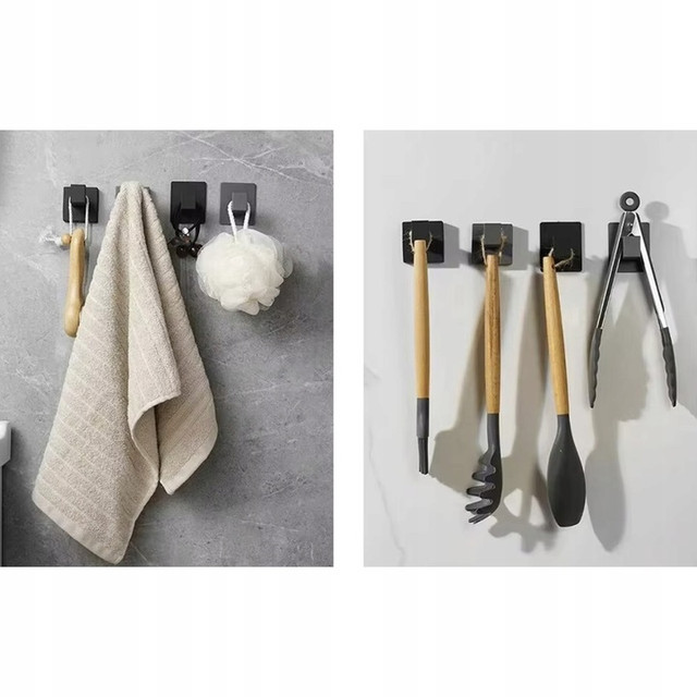 Настінні самоклеючі гачки Ruhhy 24649 — 4 шт, чорний матовий, до 5 кг