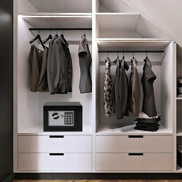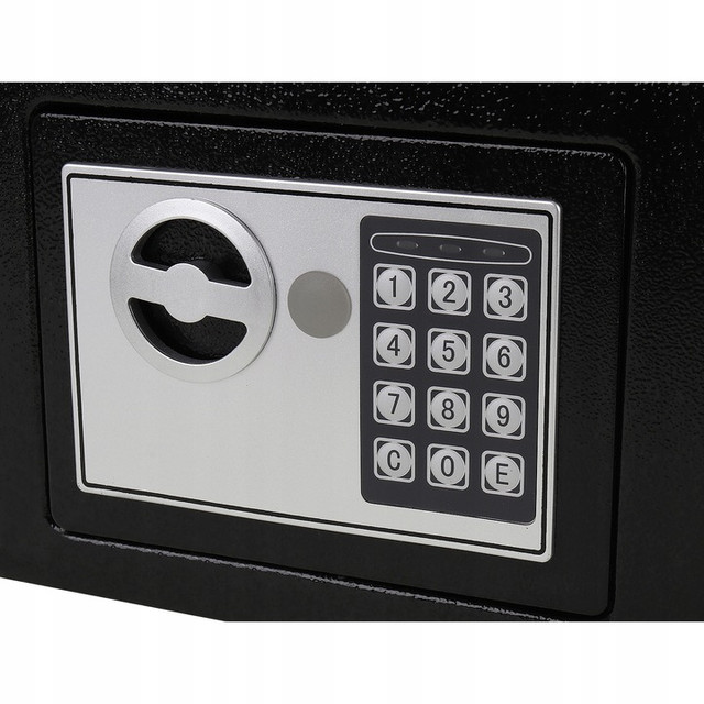 Сейф Malatec S8799 — це надійне рішення для зберігання грошей, документів, прикрас та цифрових носіїв. Оснащений електронним замком із кодом і механічним ключем, має захист від злому, сигналізацію при спробі злому та LED-індикатори. Його можна прикріпити до стіни або меблів — ідеально підходить для дому, офісу або готельного номеру.