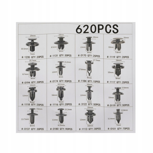 620 клипс 16 типов — для обшивки, бамперов, арок, панелей, подкапотного пространства