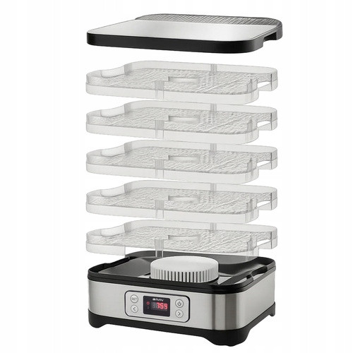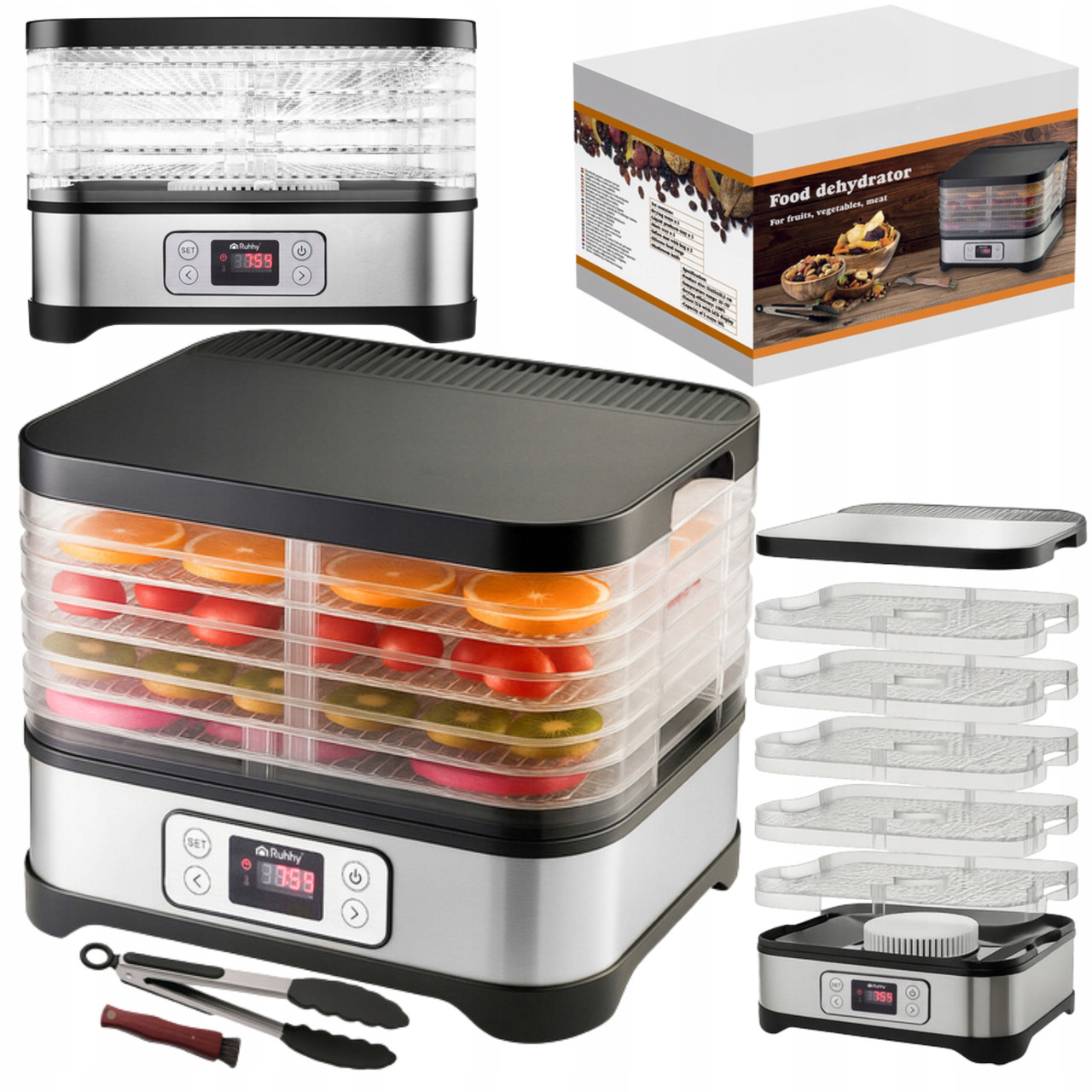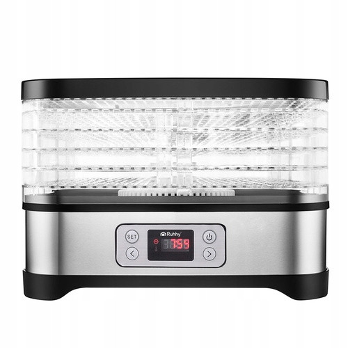 Сушарка Ruhhy 25929 — це багатофункціональний дегідратор для грибів, овочів і фруктів, оснащений 5 піддонами об’ємом до 10 л, LCD-дисплеєм, регульованим термостатом (35–70 °C) і таймером на 24 години. Завдяки вентилятору з конвекцією, лоткам для рідин, антипригарним килимкам і сіткам ви зможете сушити будь-які продукти з комфортом. Енергоощадна модель з сертифікатами безпеки, без BPA — ідеальна для дому, кухні чи дачі.